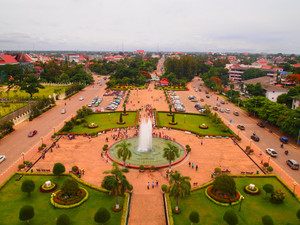 森の都とも呼ばれているラオスの首都ビエンチャン。とても首都とは思えないような小さな町。メコン川が流れ、のんびりとした雰囲気です。