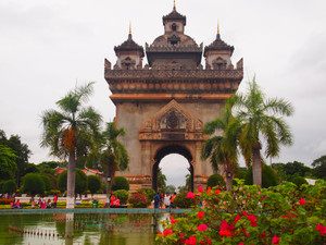 未完の戦没者慰霊塔パトゥーサイ。展望台もあり、ビエンチャンの町を一望できます。