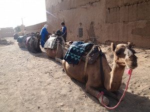 夕方、宿の前にラクダが迎えに来て、砂漠ツアーがスタート!