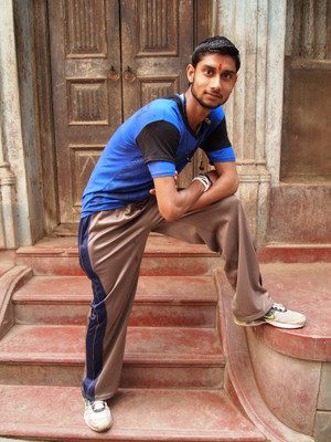 カメラを向けると、次々にポーズをとってくれるサービス精神旺盛なイケメン。おまけにチャイまでごちそうしてくれました。インドで大人気のスポーツ・クリケットを中心に様々なスポーツをしているラッキーさんは、8つに割れた腹筋の持ち主。彼に会いたい方、8つに割れた腹筋を見てみたいという方は、彼が働くゲストハウス“PEACE HOME”まで。