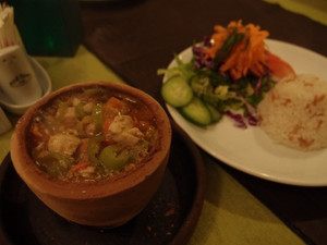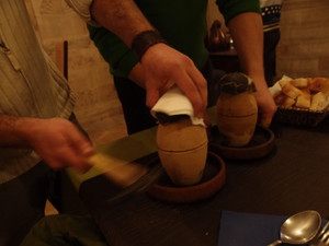 これは素焼きの壺に入ったポッティケバブ。たたいて壺を割って食べます。