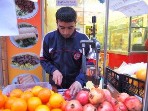 これは街中によくあるジュースの屋台。ザクロやオレンジなど生絞りフルーツジュースを飲むことが出来ます。