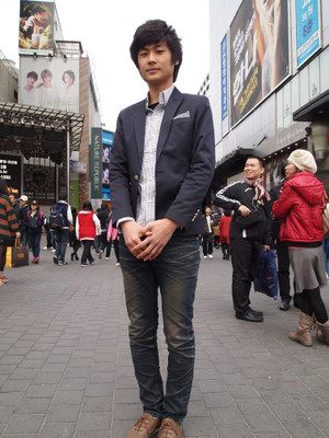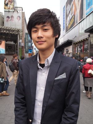 彼女と待ち合わせ中だったクォン君。母性本能をくすぐるピュア系のイケメンです。今日のファッションポイントは胸のスカーフ。「韓国の映画や音楽を、もっと日本の方に知ってもらいたい」とハニカミながら話してくれました。