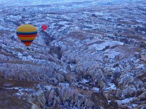 赤い岩、ローズバレーを越え、カッパドキアの上空を散歩。
