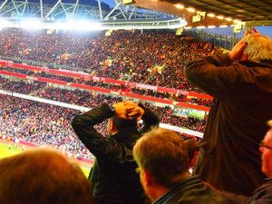 試合中は立ち見禁止のため、おとなしく座って観戦しているんですか、チャンスやミスのたびに「Ohoooo!」と叫びながら立ち上がり、頭を抱えてみんな同じポーズをするんです(笑)