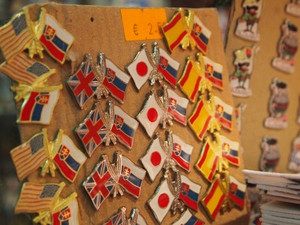 お土産屋さんには、日本とスロバキアの国旗がセットになったピンバッチが売っていました。