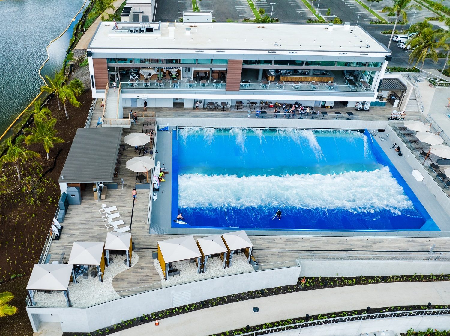 「ザ・ラインナップ」のメインとなるのが、シティウェーブを採用した「ワイカイウェーブ」。ハワイ初の水深のあるスタンディングウェーブプール(人工的にサーフィンの波を起こすプール)で、ビギナーからプロの方まで、自分のレベルに合わせたサーフィンを楽しむことができます。