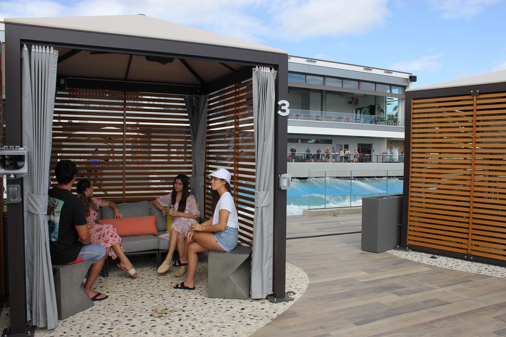 サーフデッキには6つの「サーフサイドカバナ」(※)があり、ソファ席、サウンドシステムなどがあり、ウェーブのライブ映像を見ながらリラックスした時間を過ごせます。また、シャワー、ロッカー、コンシェルジュサービスを備えたプライベートラウンジの「ナロ・カイ・クラブ」もあります。