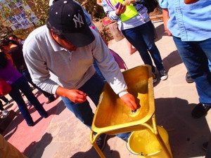 流し台の実験。北半球と南半球では水を流したときに渦が回る方向が違うんです。