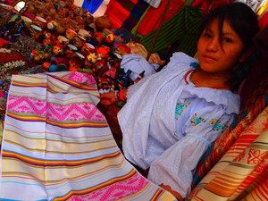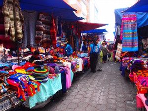 南米でも有数の手工業市で広場を中心に女性たちが手作りの織物や刺繍製品がズラリと並びます。