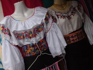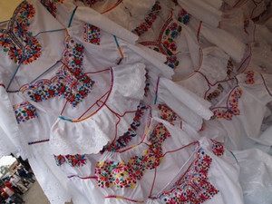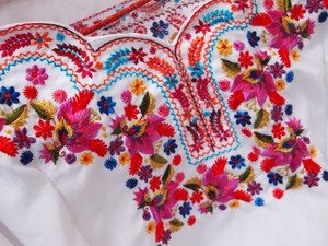 手作りの刺繍はカラフルで、目を惹きます。街にはたくさんの民族衣装屋さんがあり、値段は大体US25ドル