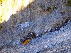 しかも、崖からトラックが落下しているのを発見してしまい、鳥肌。
