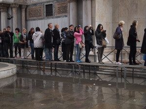浸水により、広場には大きな水たまりがあり、それを避けるための足場がありました。