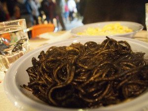 これは、ヴェネツィア名物のイカ墨パスタ。