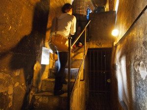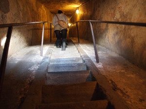 上に行けば行くほど、階段が細くなり、上から降りてくる人とすれ違うのも大変です。
