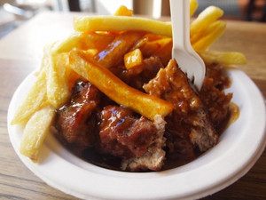 山盛りのポテト&ハンバーグが3ユーロ(約312円)