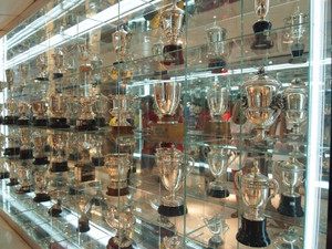 館内には、歴代のユニフォームやチームの歴史、栄光のトロフィーなどが展示されていました。