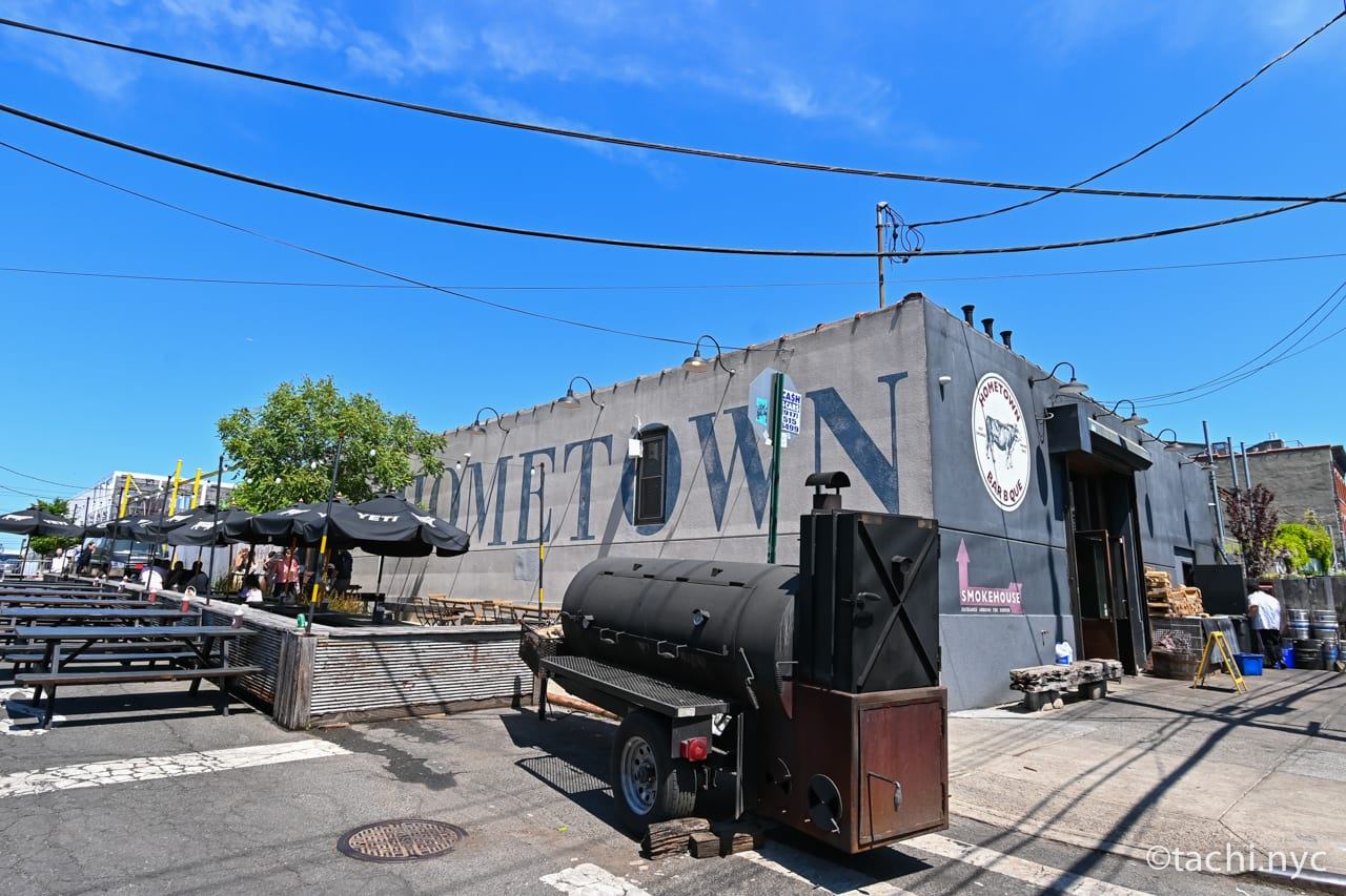 2013年にオープンした「ホームタウン・バーべキュー」は開店前から行列ができる、レッドフックでいちばん人気のレストラン。バーベキューは、牛の肩バラ肉”Brisket”、豚の”Pulled Pork”などが人気。価格は高め。
