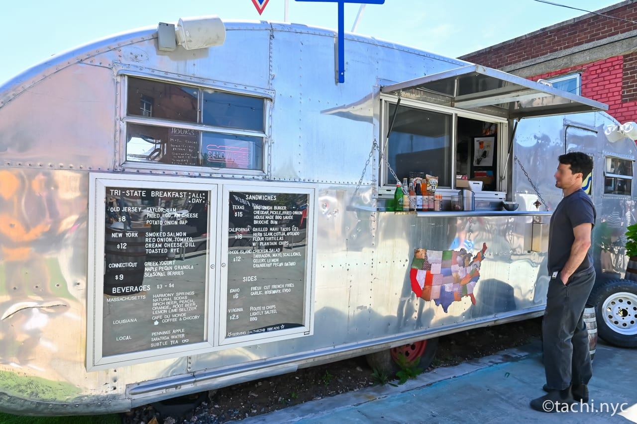 「ルイス バレンチノ Jr. パーク アンド ピア」公園の近くにある、サンドイッチの移動屋台「ユナイテッド・サンドイッチ・オブ・アメリカ」。朝食メニューやハンバーガー、サンドイッチなどが提供され、朝食メニューは終日注文可能です。天気がいい日に、公園のベンチで自由の女神を眺めながら食べるのがおすすめです。
