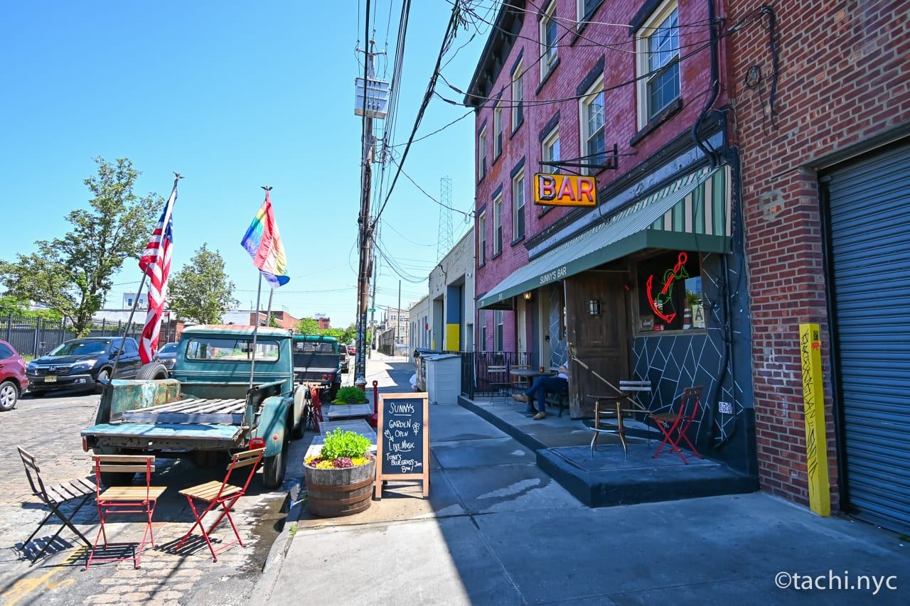 1890年創業のレッドフックで最古参のバー「サニーズ」。港湾労働者や船員のたまり場だったバーは、アーティストの隠れ家となり、口コミの評判を聞きつけて人々が集まりました。店名の伝説的オーナー、サニー・バルツァーノ氏は、バーの上の部屋で誕生し、2016年に逝去されるまでその部屋に住んでいたそうです。