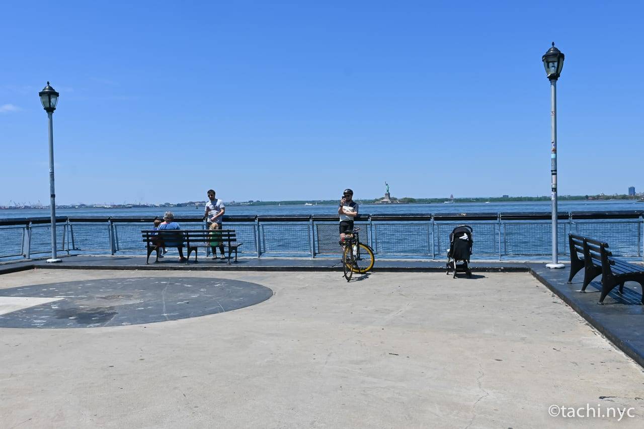 ベンチが多い公園で、それほど混み合わないので、ゆっくりとくつろいで自由の女神を眺めることができます。