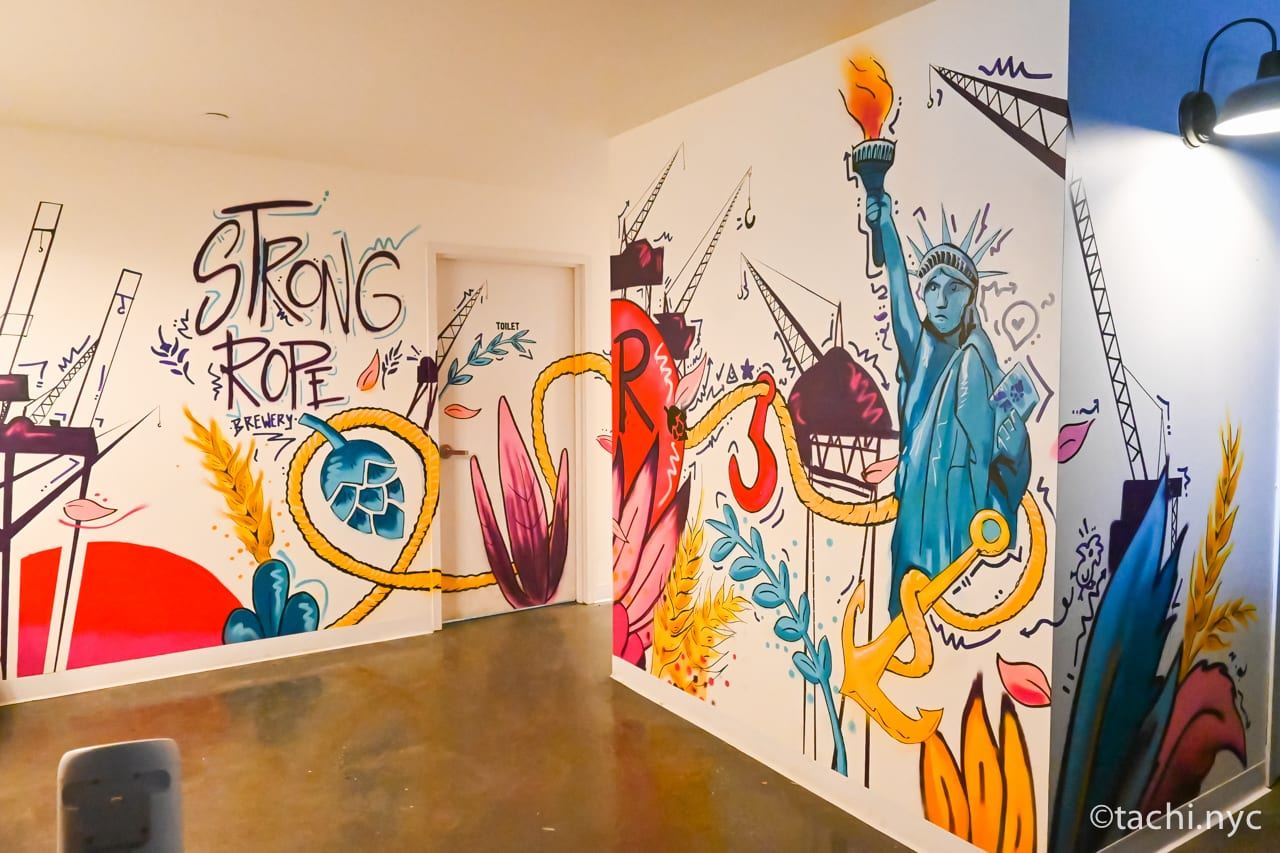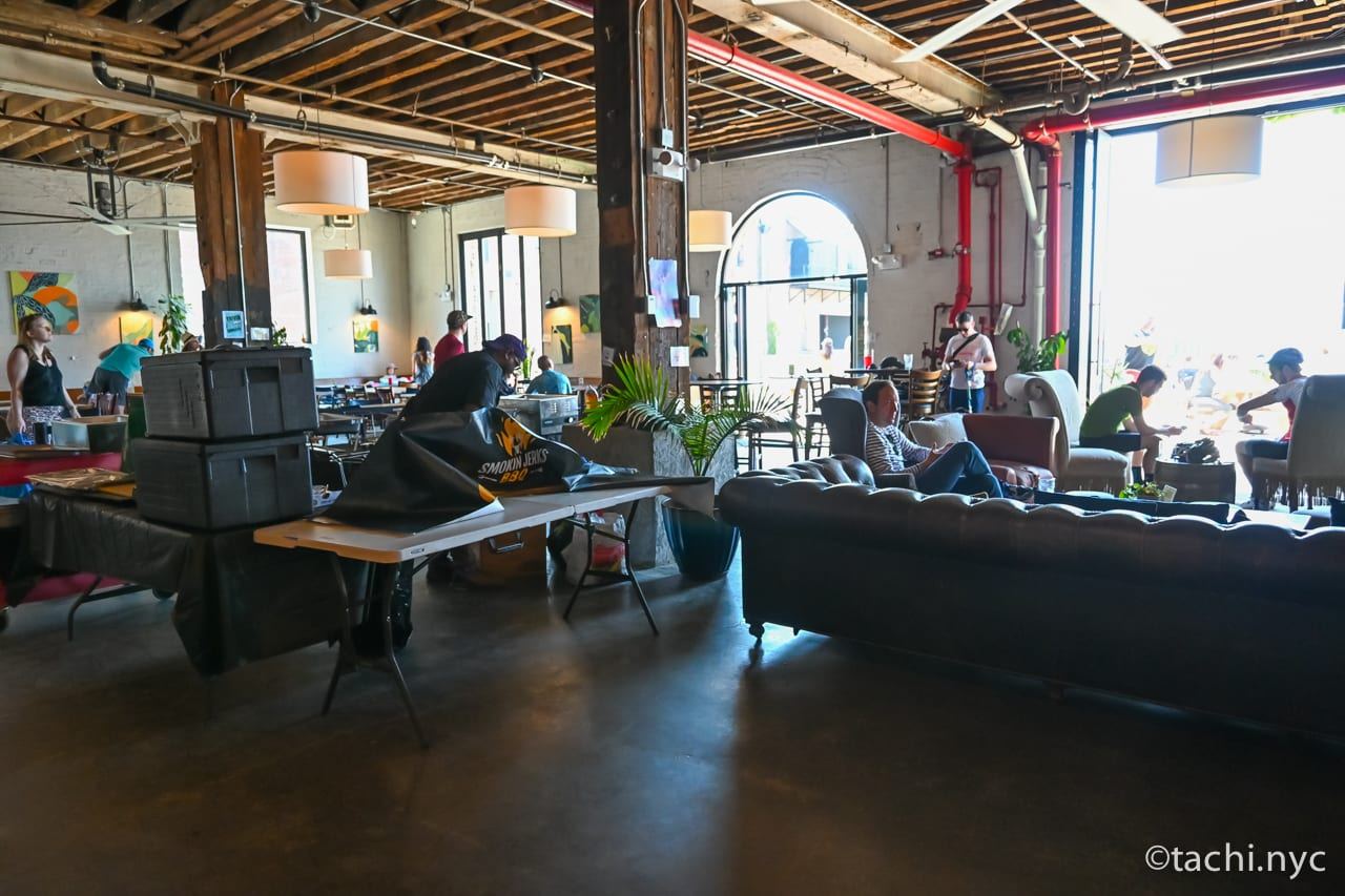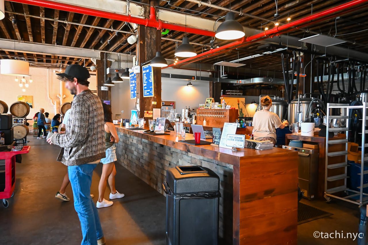 レッドフックにある飲食店のなかで、自由の女神ビューの特等席があるのが「ストロング・ロープ・ブリュワリー」。自由の女神を見ながらおいしいクラフトビールが飲める、完璧な休日が過ごせます。利用客はビールを片手にご満悦の様子でした。