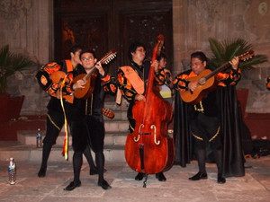 グアナフォトでは夜になると、エストゥディアンティーナと呼ばれる中世のヨーロッパの学生服を着た楽団が現れ、楽しい音楽を奏でながら約1時間ほど夜の街を歩くツアーが開催されるんです。