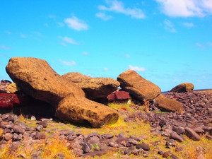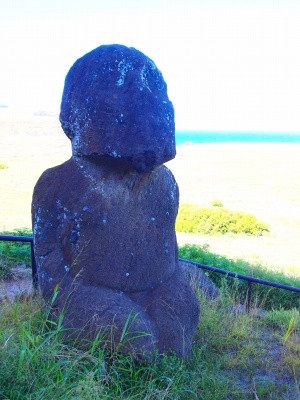 そして、海沿いを歩いていると、第一モアイを発見!!