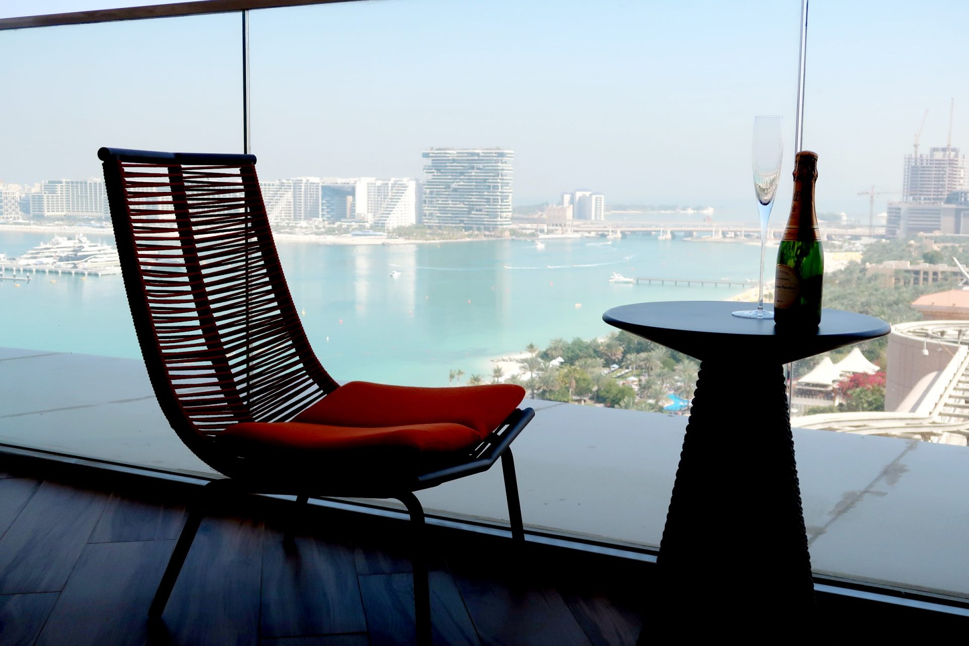 座り心地のよい椅子が置かれたバルコニーは、眼下に広がるアラビア湾と街を眺めるのにぴったり。朝、昼、夕刻から夜へと、時間とともに色彩を変え、ずっと見ていても飽きません。すべての客室にWブランドのシグネチャーともいえるミックスバーを備えているので、冷たいシャンパンやビールを飲みながら楽しむのがいいですね。