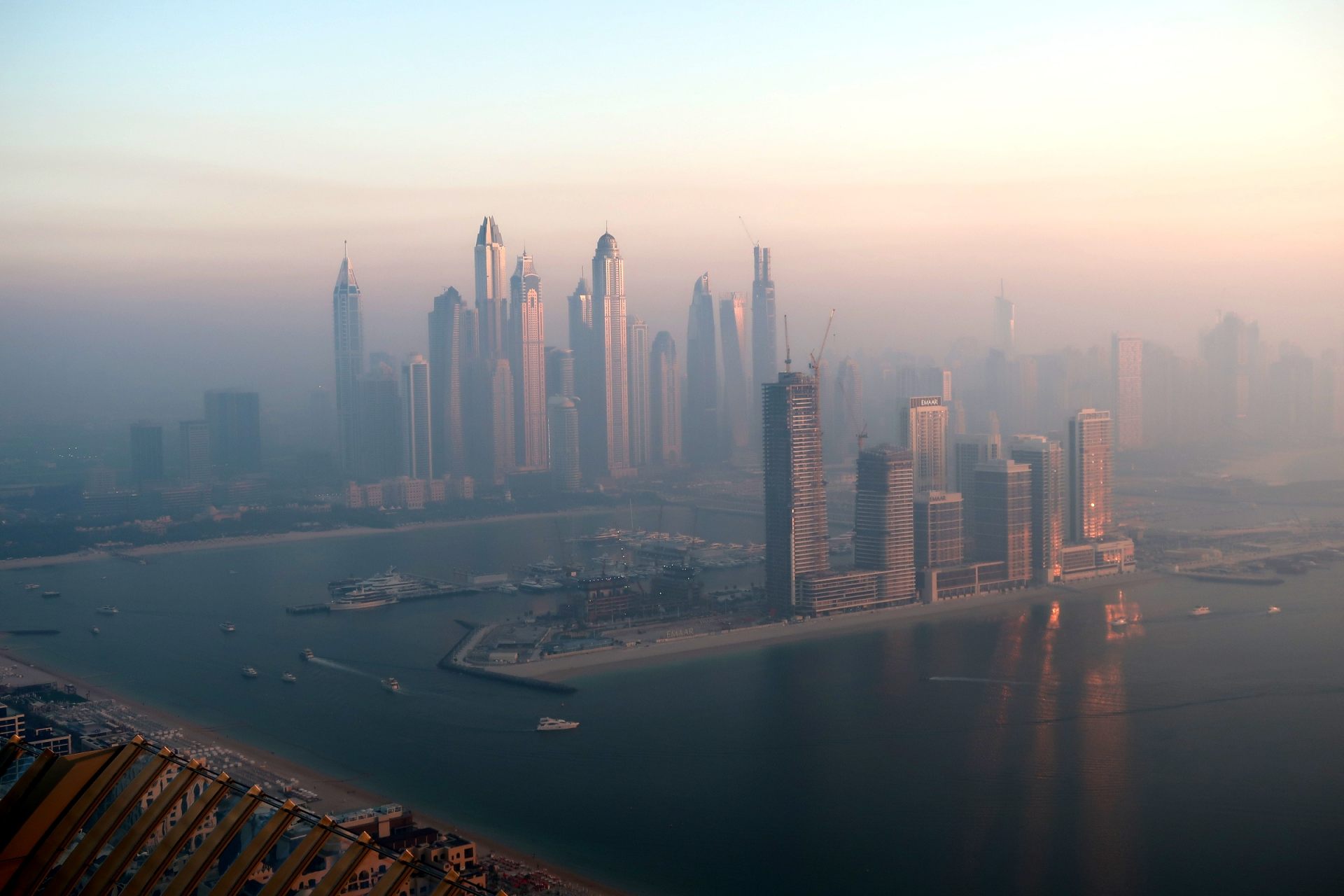 ホテルやショッピングセンターなどの建造物を鑑賞するだけでもアートな気分に浸れるのがドバイ。そのドバイを象徴するのが、ヤシの木の形をした世界一の人工島「パーム・ジュメイラ」。地上240mの高さにある展望スポット、「ザ・ビュー・アット・ザ・パーム(The View at The Palm)」は、その人工島を一望できる絶景スポットです。