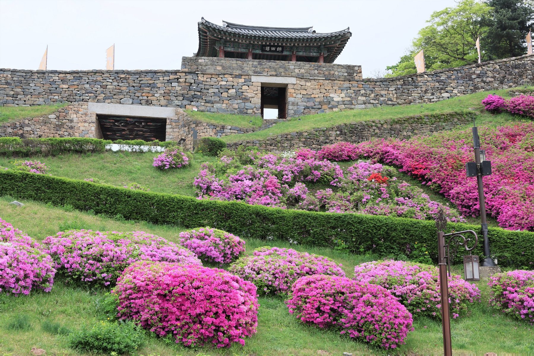公州は、三国時代の475年〜538年に百済の首都となった場所。町の中心部は小さいながらも世界遺産がぎゅっと集まっていて歴史好き、世界遺産好きにはとてもおすすめの町です。ここでまず訪れたいのは首都が置かれていた熊津の防衛施設として機能していた「公山城」。入口の立派な城壁にまず驚きますが、ちょっとがんばって登った公山の頂上から町並みと城壁を見下ろせば、なんだか百済時代にタイムスリップした気分。食料を長期間保管するため、土の下に作られた冷蔵庫や、貯水施設などもあり、当時の知恵にも目をみはります。