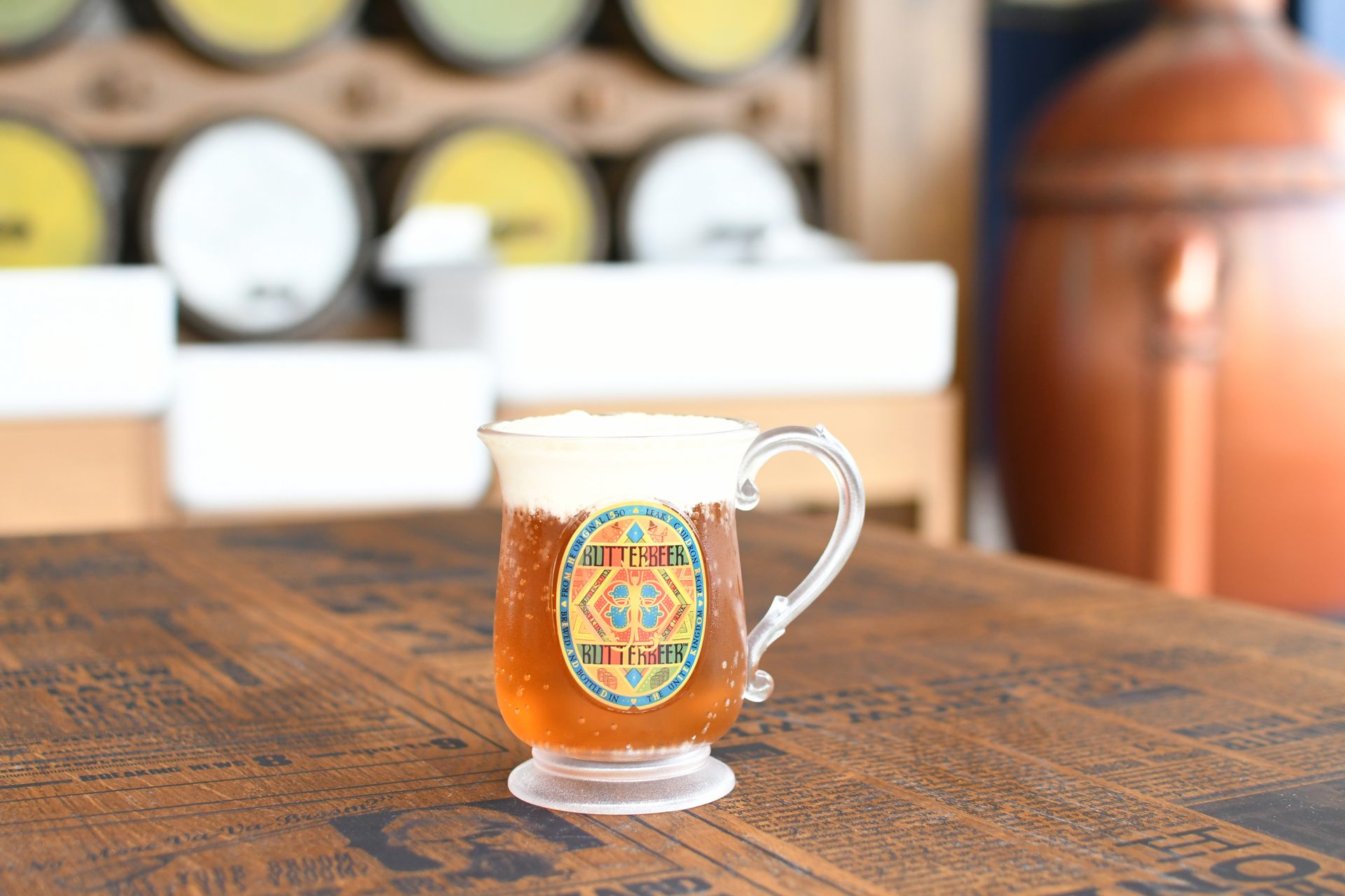 また、屋外にあるバター・ビールバーでは、魔法使いの飲み物として作中に登場するあのバタービールを開放的なテラスで楽しむことができます。ビールといってもノンアルコールで、名前の通りバターの甘い香りが広がる微炭酸のドリンクです。