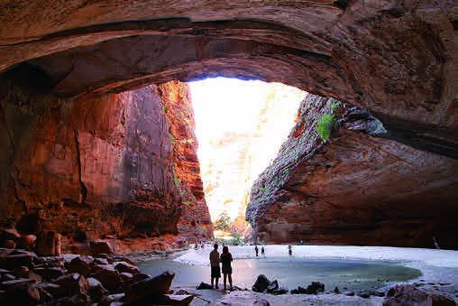 ブルームへの帰路に立ち寄るのはデボニアンリーフ渓谷群の見どころ。ミンピケーブでは先住民のガイド付きで鍾乳洞を散策。先住民の壁画も見て回る。またトンネルクリークでは真夏でも冷たい洞窟内の渓流を抜け、小川で遊泳を楽しむ。そしてウィンジャンゴージ国立公園でのブッシュウオーキング。その勇壮な渓谷はもちろん、水辺の目と鼻の先でオーストラリアワニが見られるのも楽しい。