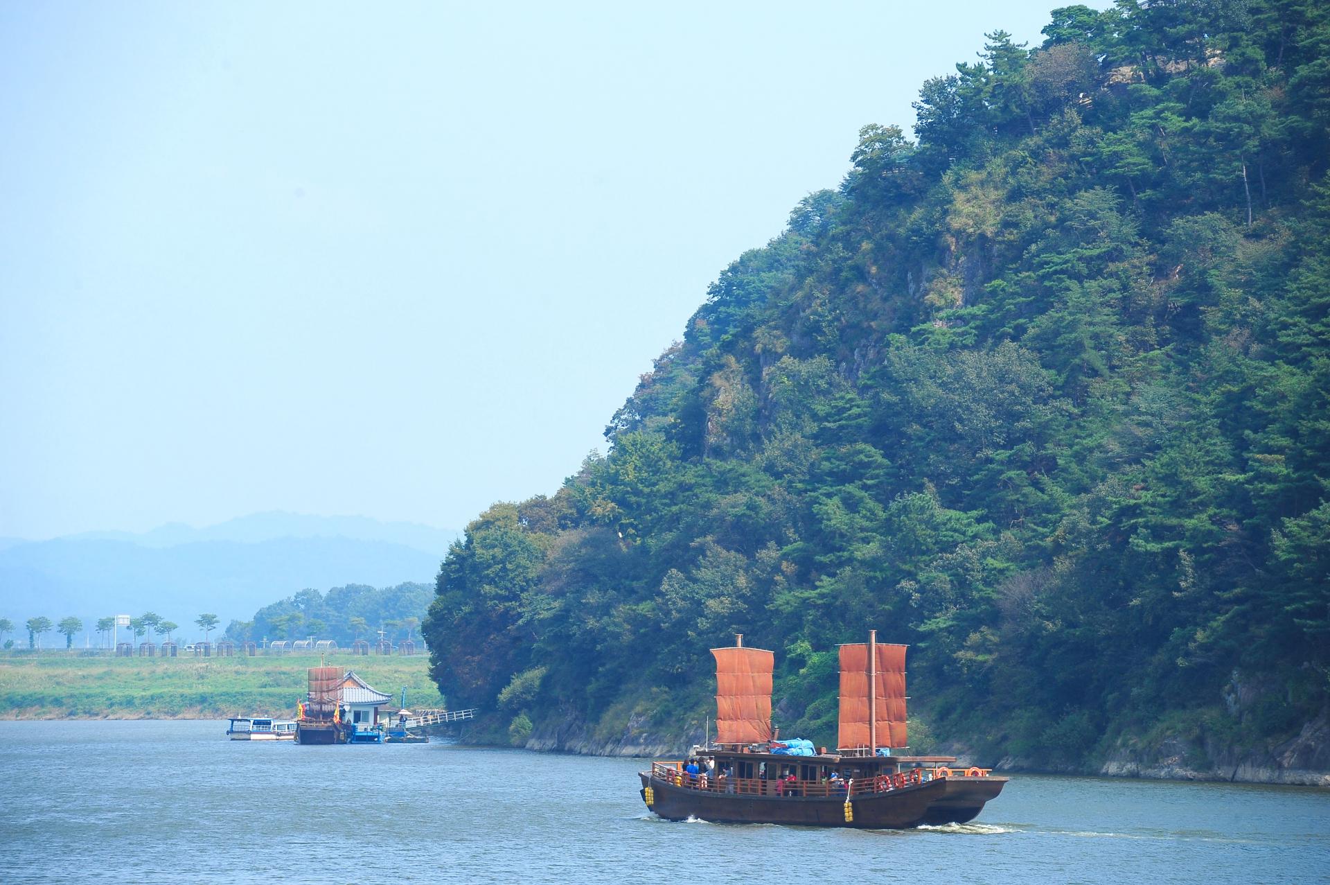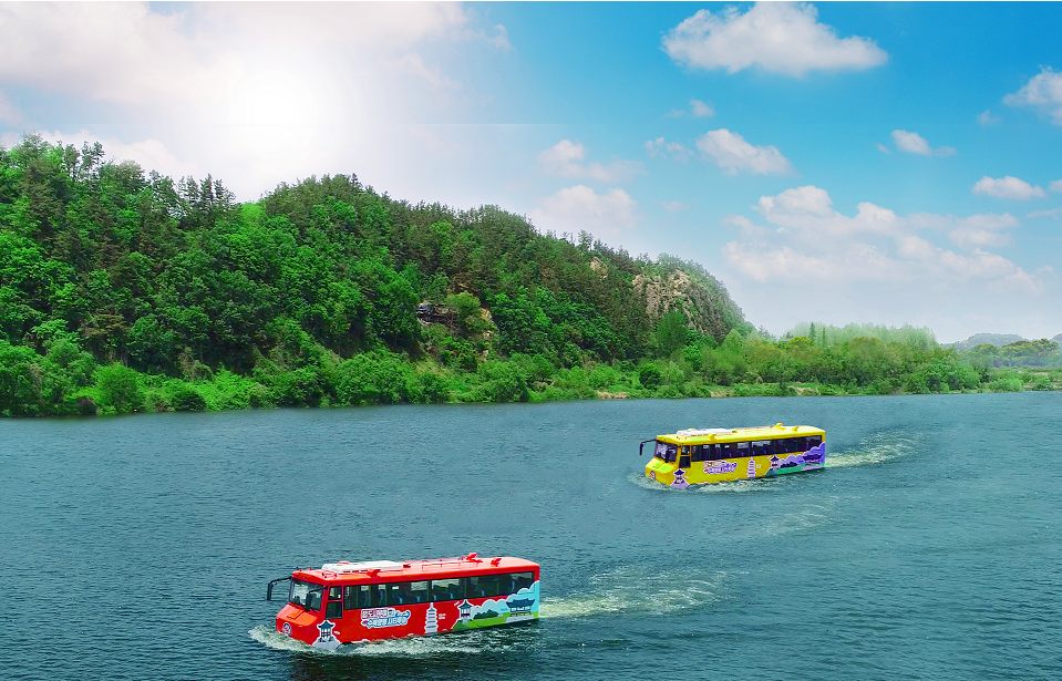 こちらの扶蘇山城のすぐ隣を流れるのが白馬江。遊覧船に乗って雄大な扶蘇山を眺めながらクルーズを楽しむこともできます。最近人気なのが、扶余の水陸両用バスツアー。扶蘇山城の駐車場から出発し、市内を車窓観光、最後のハイライトでは白馬江に入水しゆったり水上遊覧を堪能できます。