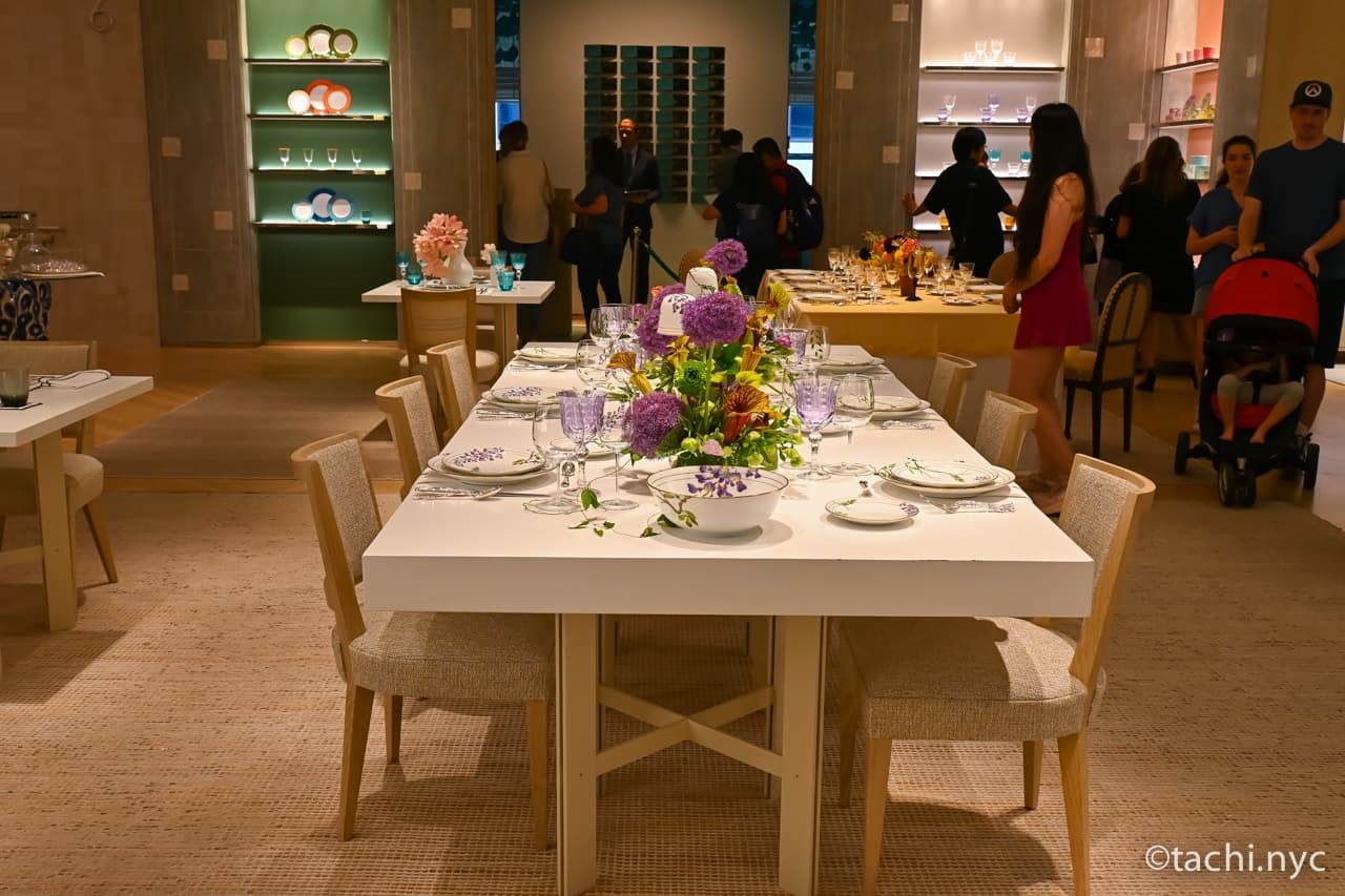 目の保養になるテーブルコレクションのコーナー。セットになった食器は持って帰れなくても、紙コップ風のティファニー・コーヒーカップやエスプレッソカップなどは、比較的手頃な値段でおみやげによさそうです。