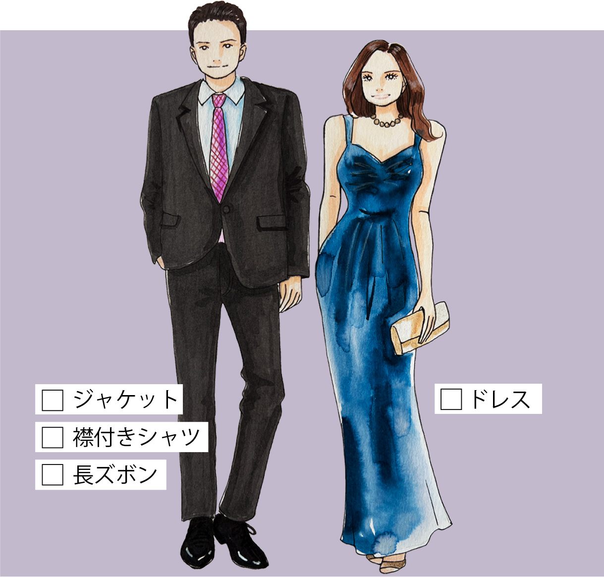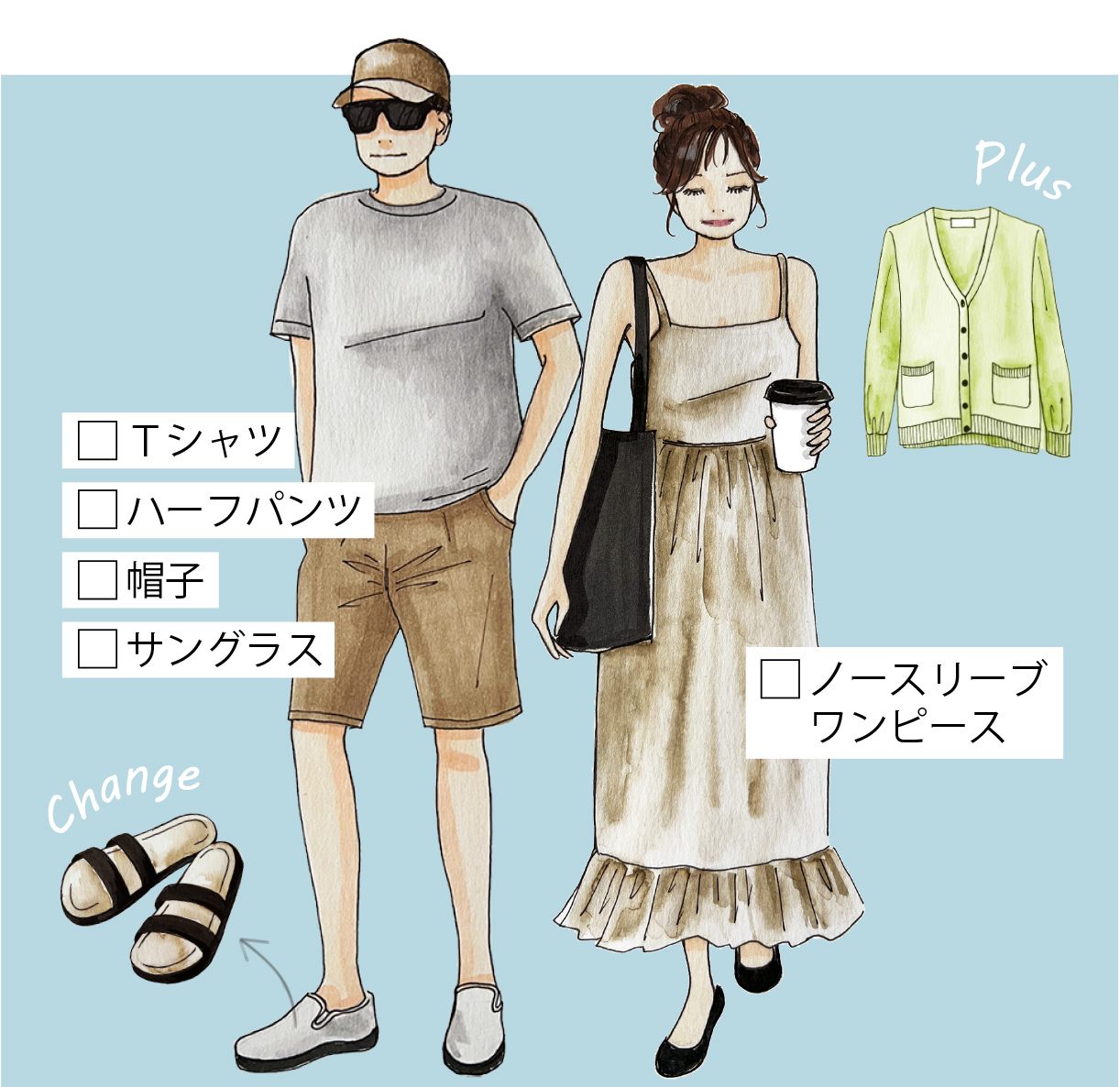 日中のラフな服装と変わって、夜はぐんとおしゃれな装いで。男性はネクタイとジャケット、女性はワンピースなどを持っていけば、ショーやディナー、クラブなどに対応できる。