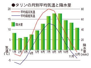 冬はバルト海の影響で、緯度のわりにそれほど厳しくはないが、それでも-20度ぐらいまで下がることもある。たいてい1月から3月までは積雪に覆われる。夏は白夜の影響下に入り、夏至の前後は夜23:00頃まで明るい。逆に冬は16:00頃には暗くなる。