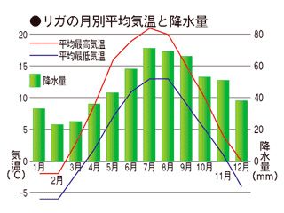 ラトビアは四季があり、春と秋は短く、冬が比較的長いのが特徴です。季節の変化は急激で、例えば5月には突然夏のような暑さが訪れたり、9月になると急に寒くなることがあります。