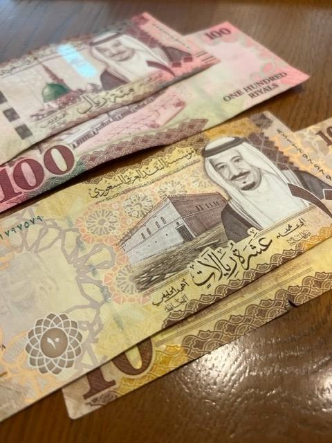 タッチ式のクレジットカードが広く普及しているサウジアラビアですが、少額の買い物やチップ用に多少の現金があった方が無難です。以前はサウジで日本円をサウジアラビアリヤルに変えるのは難しかったですが、現在ではリヤドの空港でも対日本円のレート表示があるなど両替しやすくなりました。ちなみ両替レートははリヤドでするより日本での方が少しお得でした。