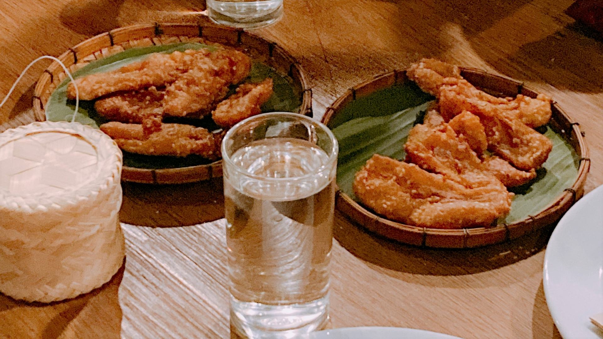 料理として出されるのは、ガイヤーン(焼き鳥)、ガイトート(鶏のから揚げ)、ナムプリックオーン(トマトの辛味噌)、ケーン・ハンレー(ミャンマー風カレー)、蒸し野菜など。そしてこれらの料理にかかせないのが、カオニャオ(もち米)です。タイ北部では、主食として食べられることが多いのがカオニャオ。店で注文するとたいてい丸い竹籠に入った状態で提供されるので、指でひと口大に丸め料理と一緒に食べます。