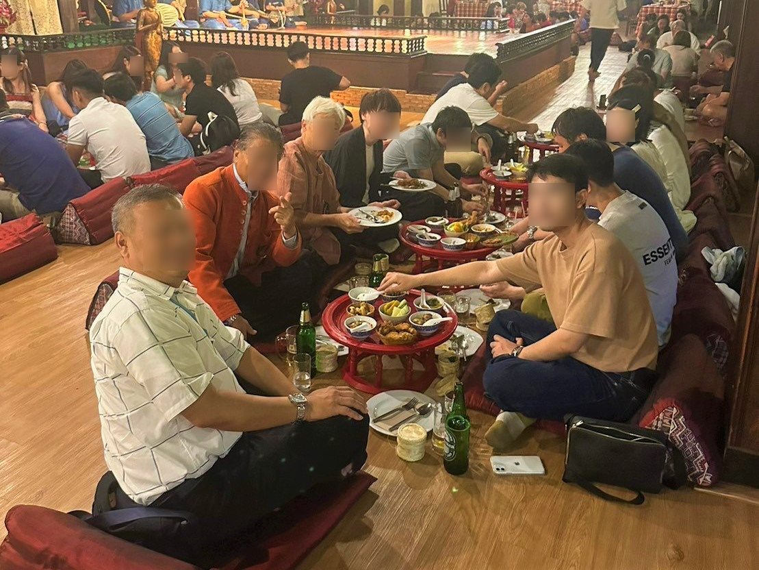 カントーク料理では、床に直接座り、取り皿なども床に直接置いて家族や友人とカントーク(丸い机)を囲むのが伝統的な食べ方です。和気あいあいとした雰囲気を楽しむのもカントーク料理の醍醐味。小鉢の料理が少なくなってきたら、店員の方が継ぎ足ししてくれるので、好きな料理をお腹いっぱい食べることができます。
