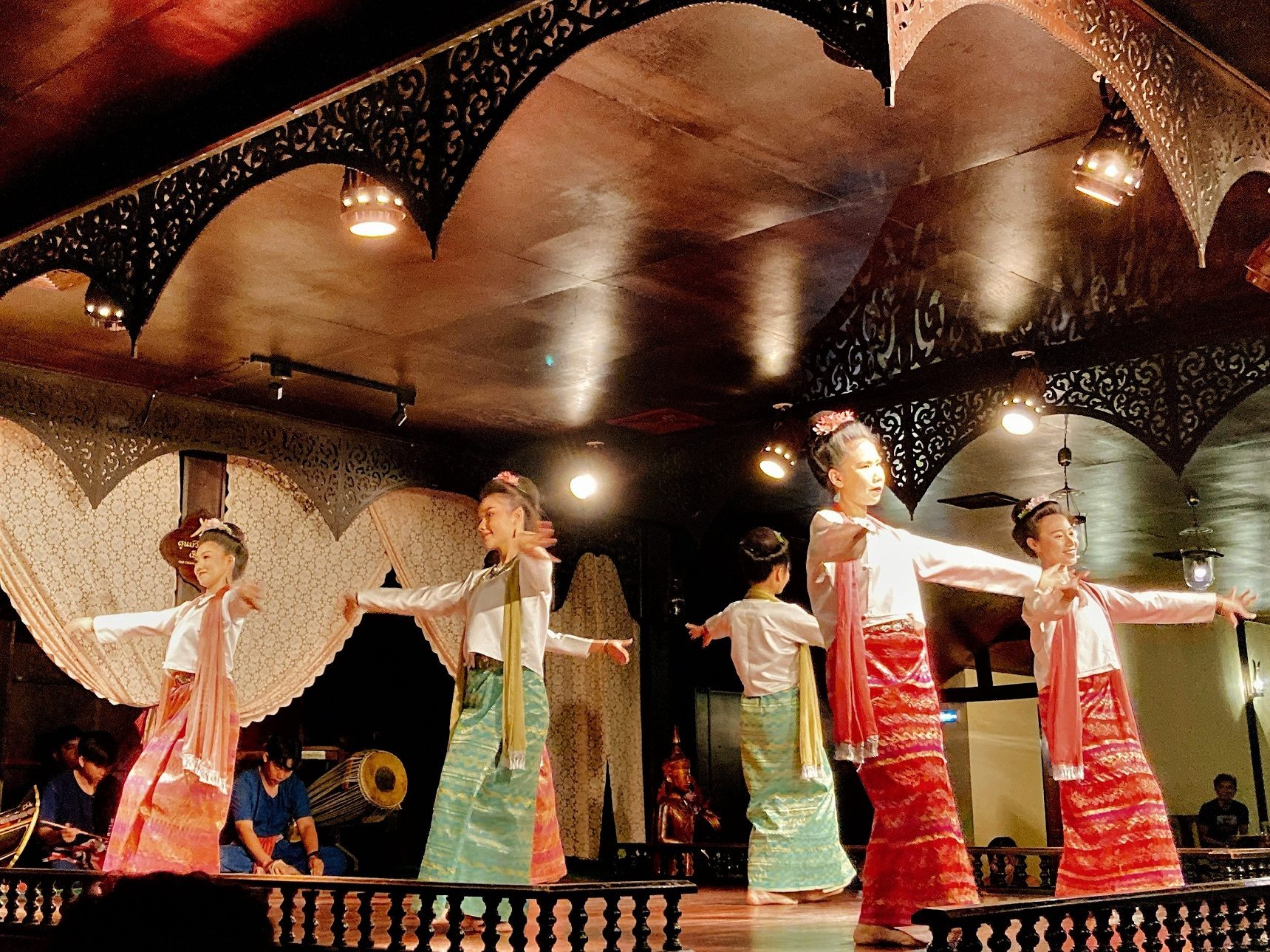 伝統舞踊ショーは、1. タイ北部伝統のお祝い膳「カントーク料理」で紹介したレストラン、オールド・チェンマイで鑑賞することができます。上演時間は19:00から20:00までの1時間(毎週火曜・日曜)。演目の最後には、観客も舞台に上がって踊ることができます。思い切って参加すれば忘れられない思い出になるでしょう。