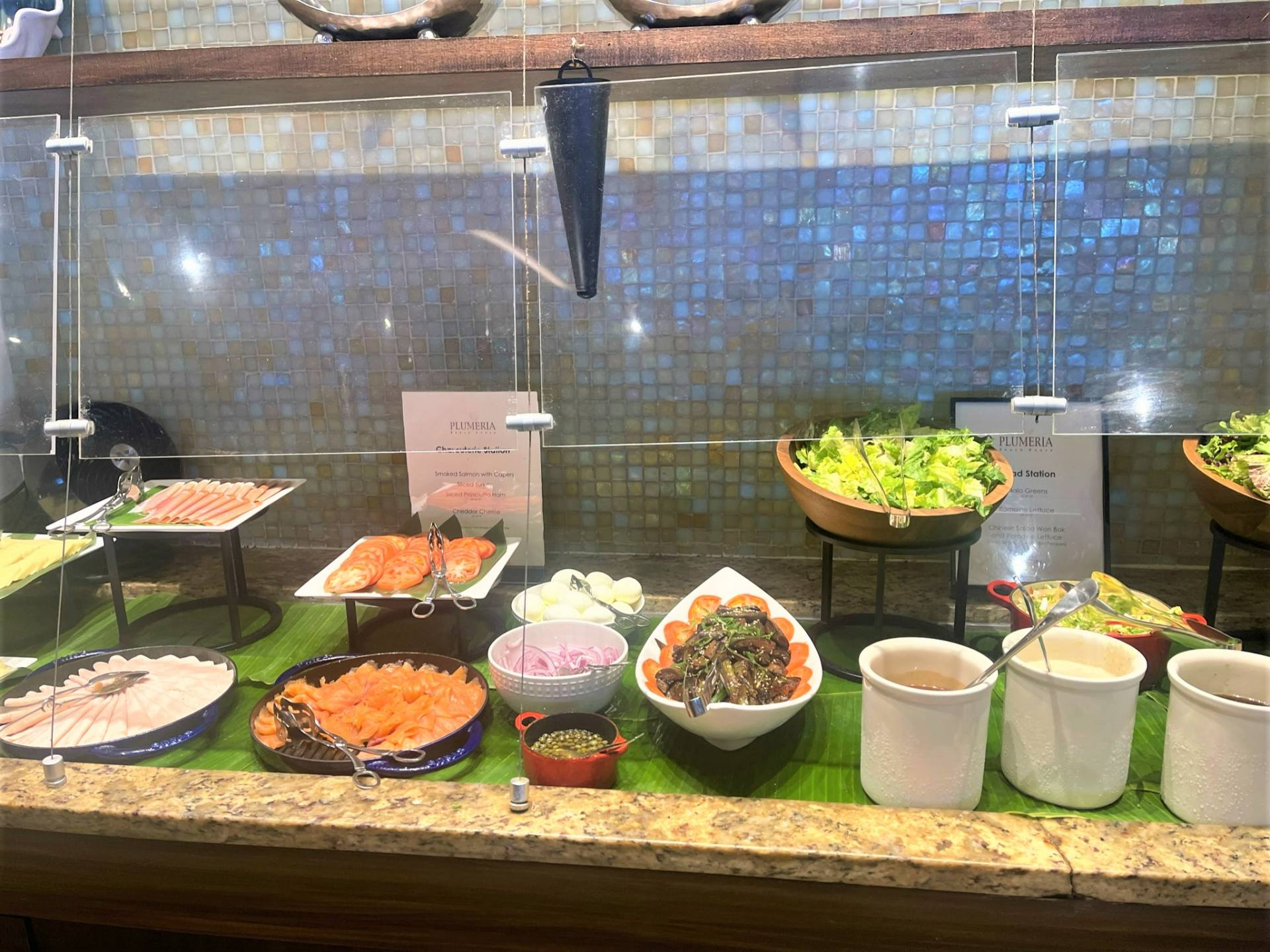 さらにプチ情報ですが、こちらのレストランは金・土曜17:00~限定でシーフードビュッフェもあり。多彩なシーフードにプライムリブ、サラダやデザートも豊富です。暮れゆく夕日を楽しみながら料理を楽しめる夕方の早めの時間がおすすめ。