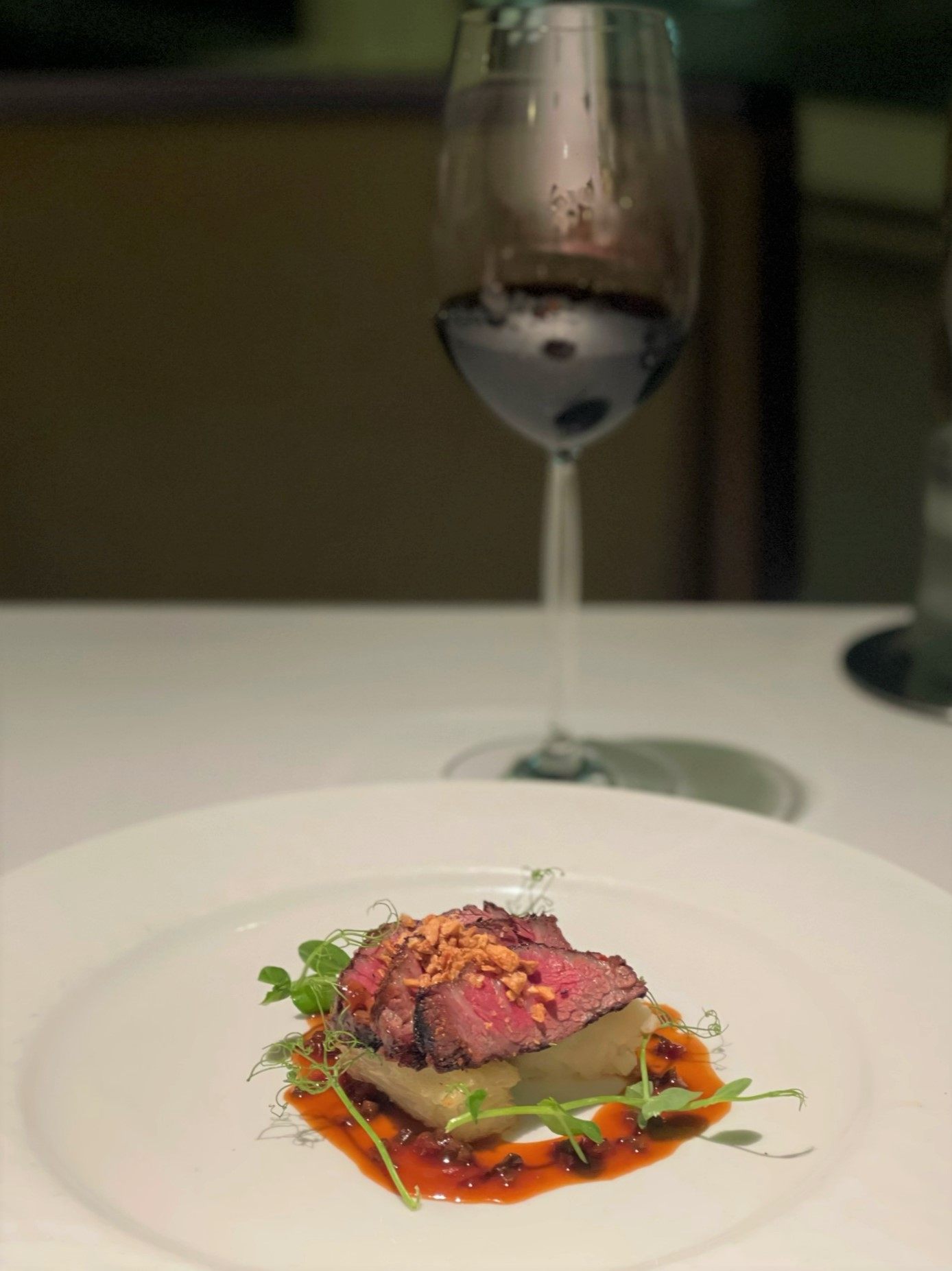 そして、ミシュラン星付きレストランで腕を磨いてきたシェフが手がけるディナーは、選べる4コースメニュー(124ドル)と、8コースメニュー(185ドル)の2種類。もちろん、ワインペアリングもありました。