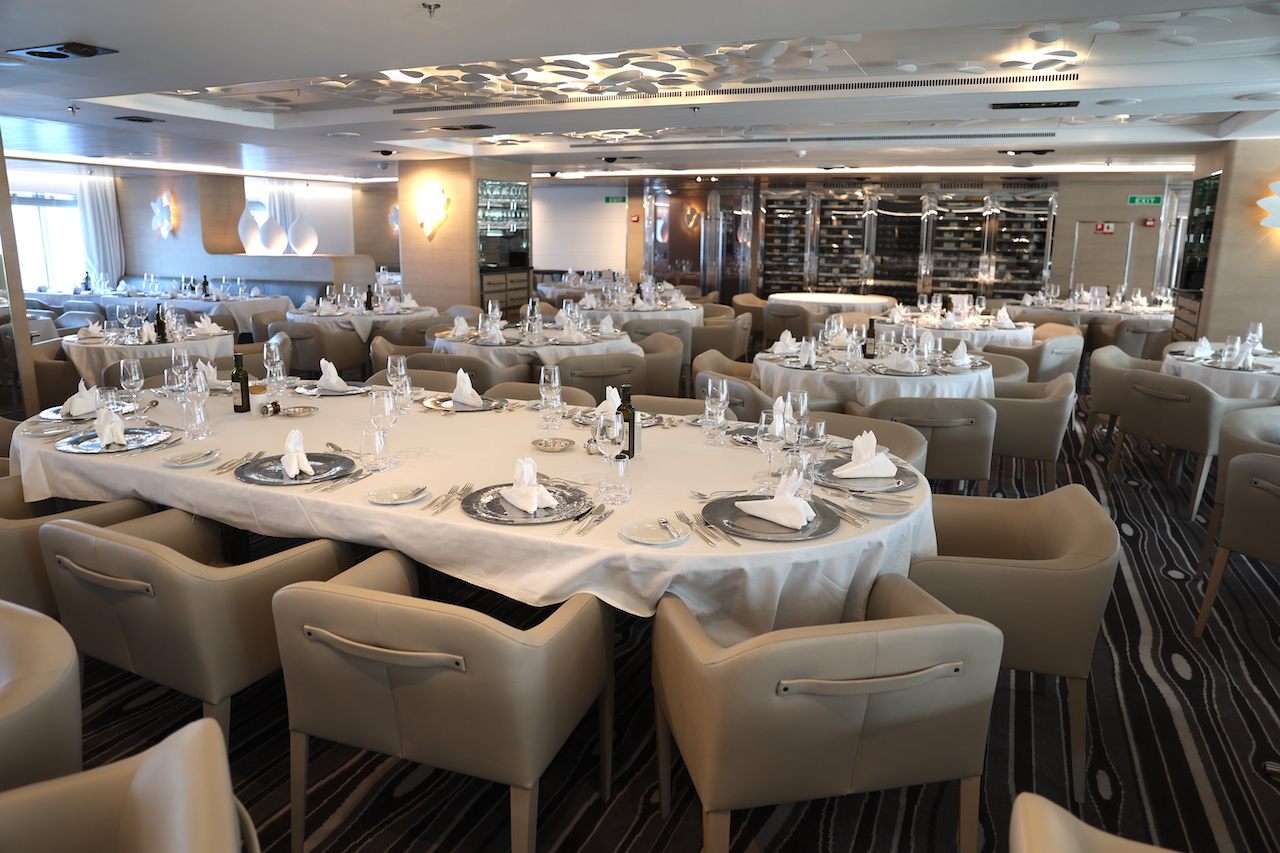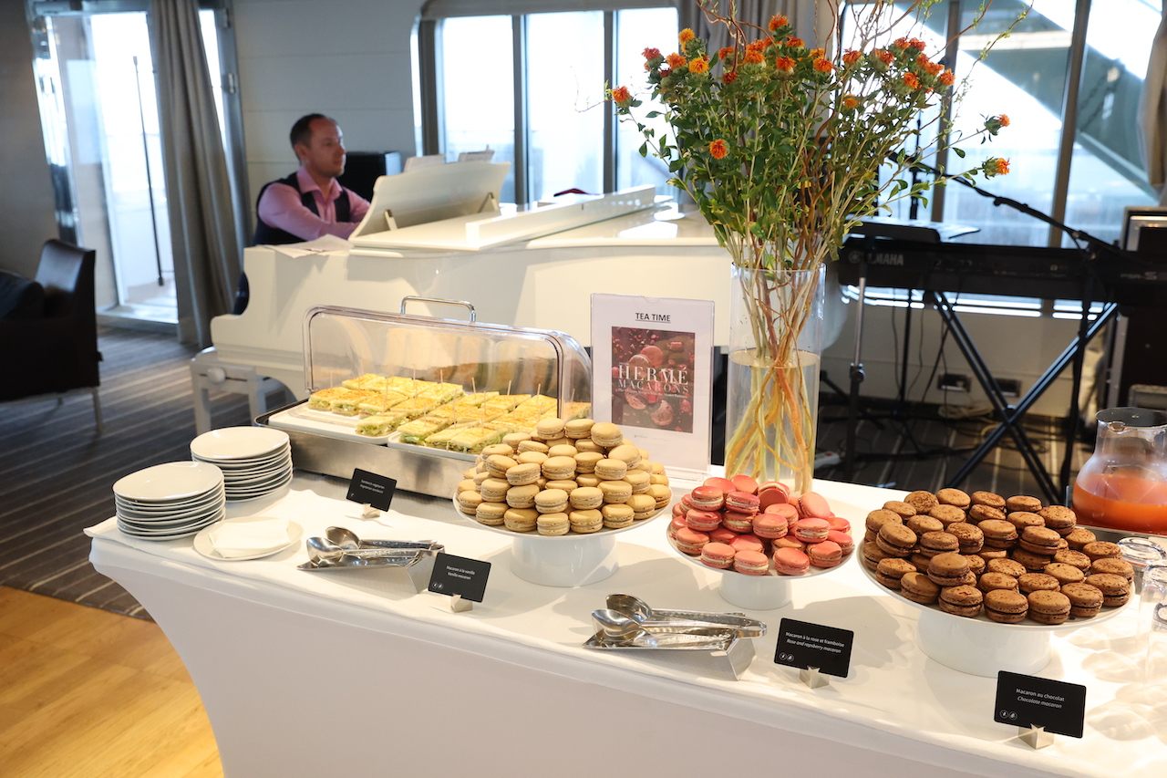 朝食ではおいしいバゲットにボルディエのバターが添えられ、ラウンジでのティータイムではなんとラデュレのマカロンが食べ放題だった日も。メインダイニングではフレンチの巨匠アラン・デュカス氏が率いる「デュカス・コンセイル」監修のもと、毎食芸術のような料理で五感を楽しませてくれます。乾杯時に開けられるのはもちろんシャンパーニュ。さらにグランクリュ格付けワインに熟成チーズまで……。港からタラップを上るだけで、そこはもうフランスなのです。