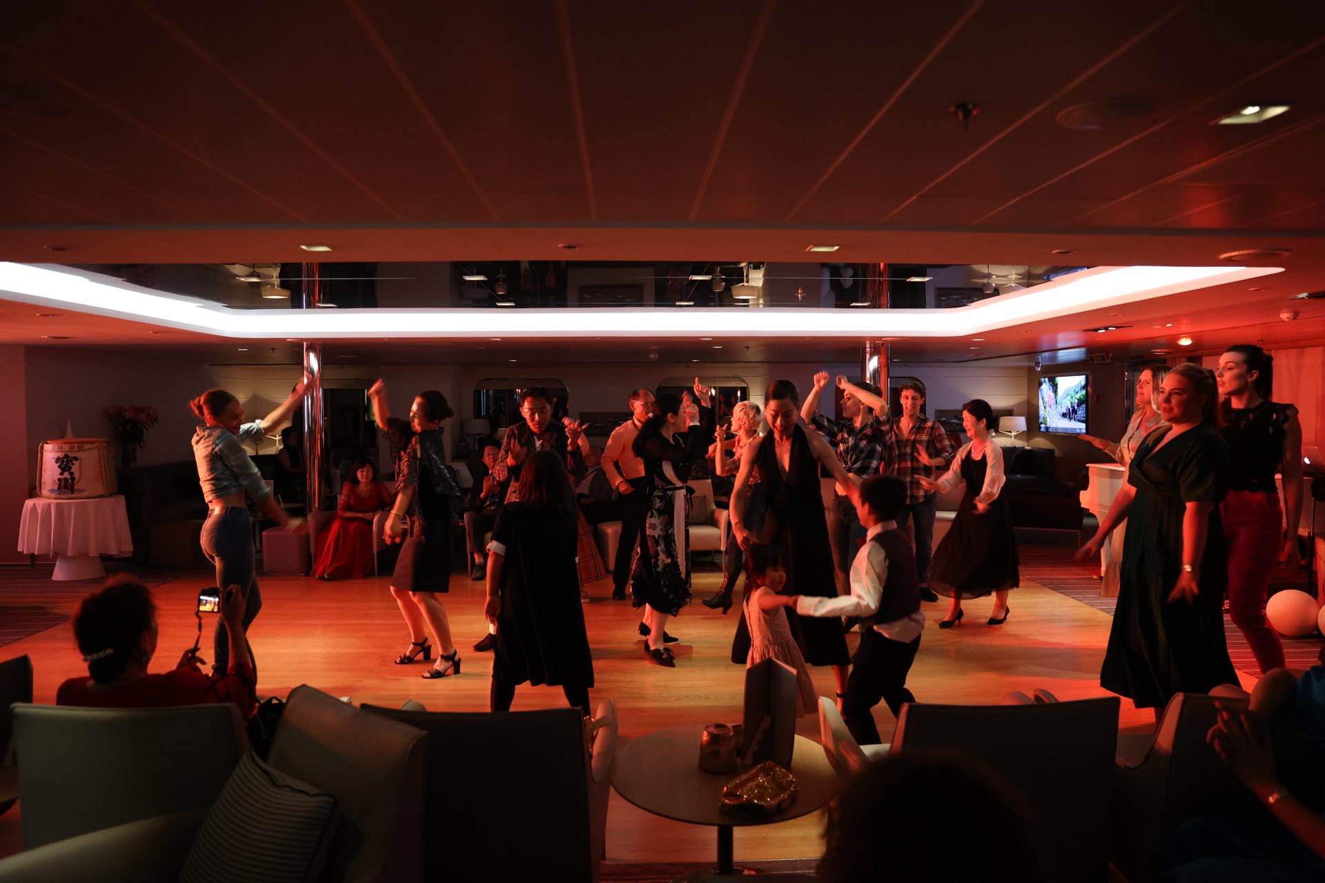 船内エンターテインメントの充実ぶりも、バカンス上手なフランス人ならでは。シアターで開催されるフレンチカンカンのショーや、ダンサーによるダンス教室、おもちゃの紙幣を使って楽しむカジノナイト、航海の海図オークションなど、日々のプログラムが非常に充実しており、9日間の乗船でも船内で退屈に感じることは一切ありませんでした。