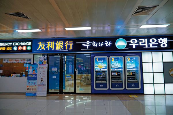 両替レートは「空港の銀行」よりは「市中の銀行」さらに「市中の両替商」のほうが有利だといわれています。空港で町へ出るためのウォンを手に入れたあとで、市中で両替したほうがお得*です。