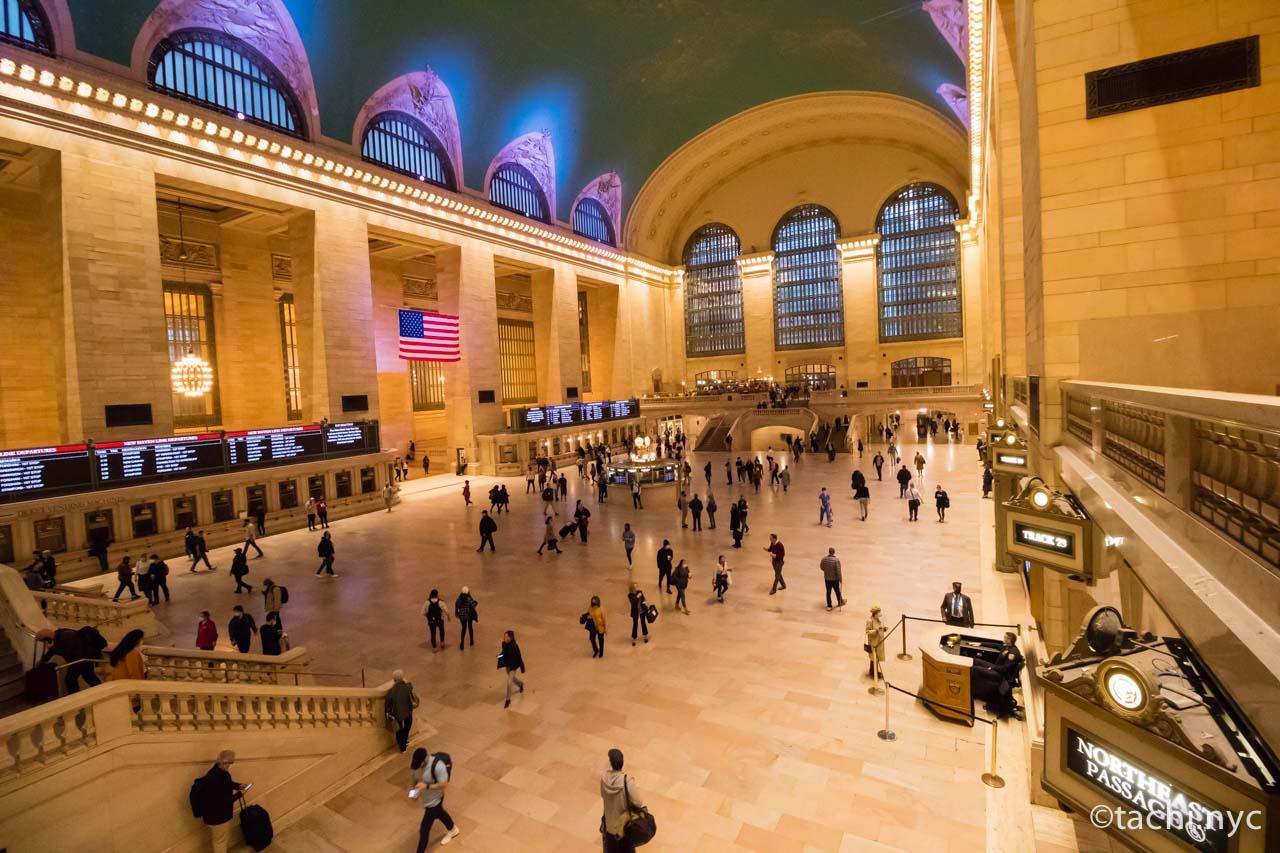 グランド・セントラル・ターミナルは、ニューヨーク郊外とマンハッタンをつなぐメトロノース鉄道、ニューヨーク市内を網羅する地下鉄(4、5、6、7、Sの地下鉄路線)やバスなど米国内最大級の交通拠点。大理石がふんだんに使われたボザール様式の建築物には、星座の描かれた天井、美しいアーチを描くガラス窓などがあり、世界で最も美しい駅のひとつといわれます。