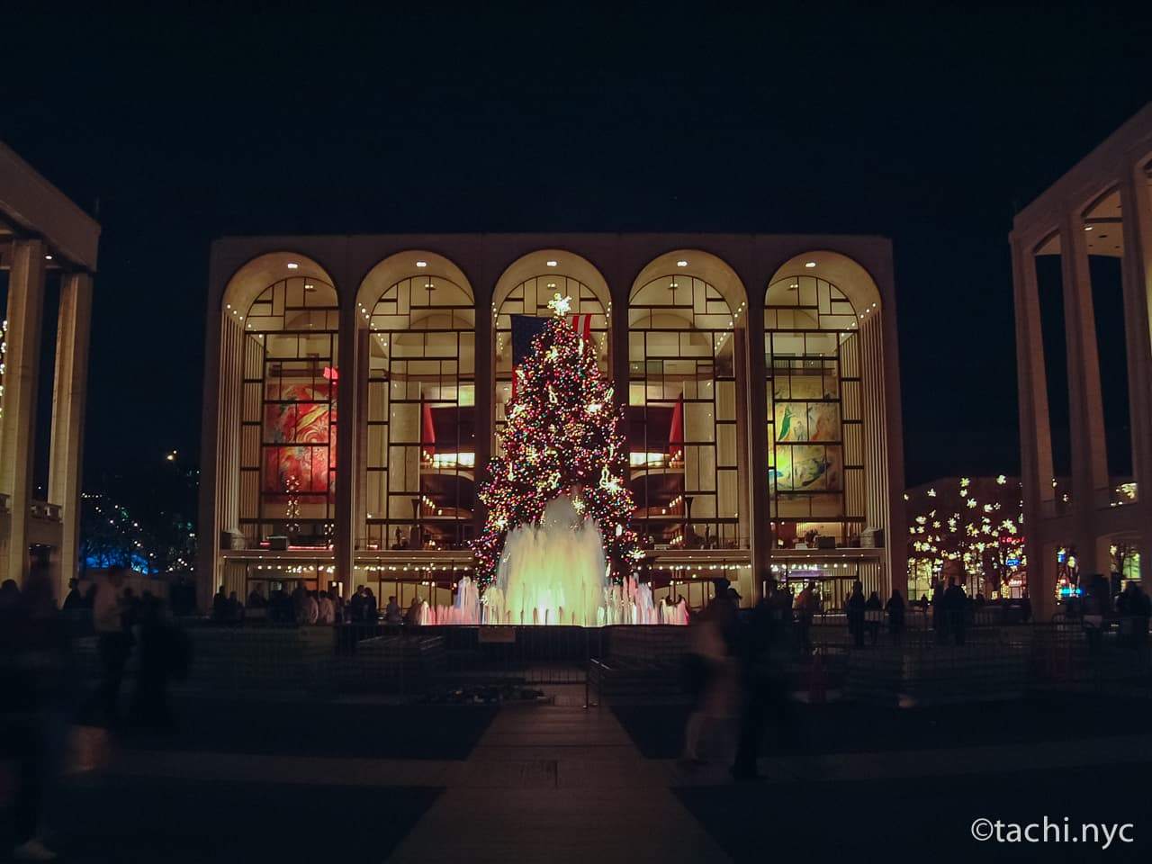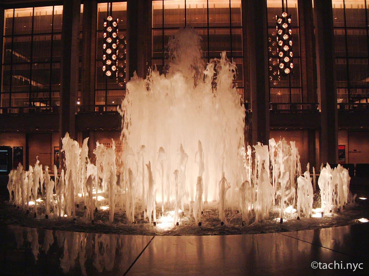 リンカーン・センターはマンハッタンのアッパーウエストに位置し、オペラやバレエの劇場、クラシックやジャズのコンサートホール、名門ジュリアード音楽院、図書館など11の芸術団体の施設が集まった世界有数の舞台芸術施設。ニューヨークの芸術の最高峰であり、華やかな社交場でもあります。レブソン噴水は表現芸術の象徴として、リンカーン・センターの中央に位置します。