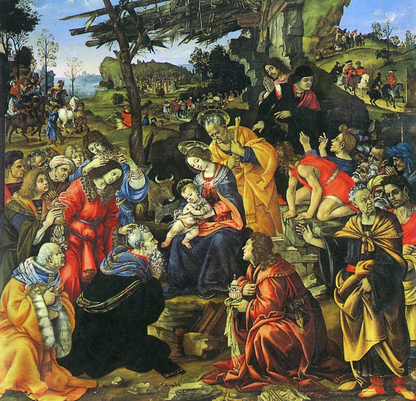 受けた東方の3人の王が、ベツレヘムでイエスに礼拝する場面を描いた物。